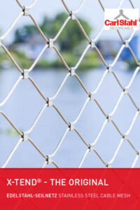 We offer samples of our standard cable mesh products in natural stainless steel, black and white. Samples are approximately 10”x10” when stretched to their ideal tension and recommended 60-degree angle.